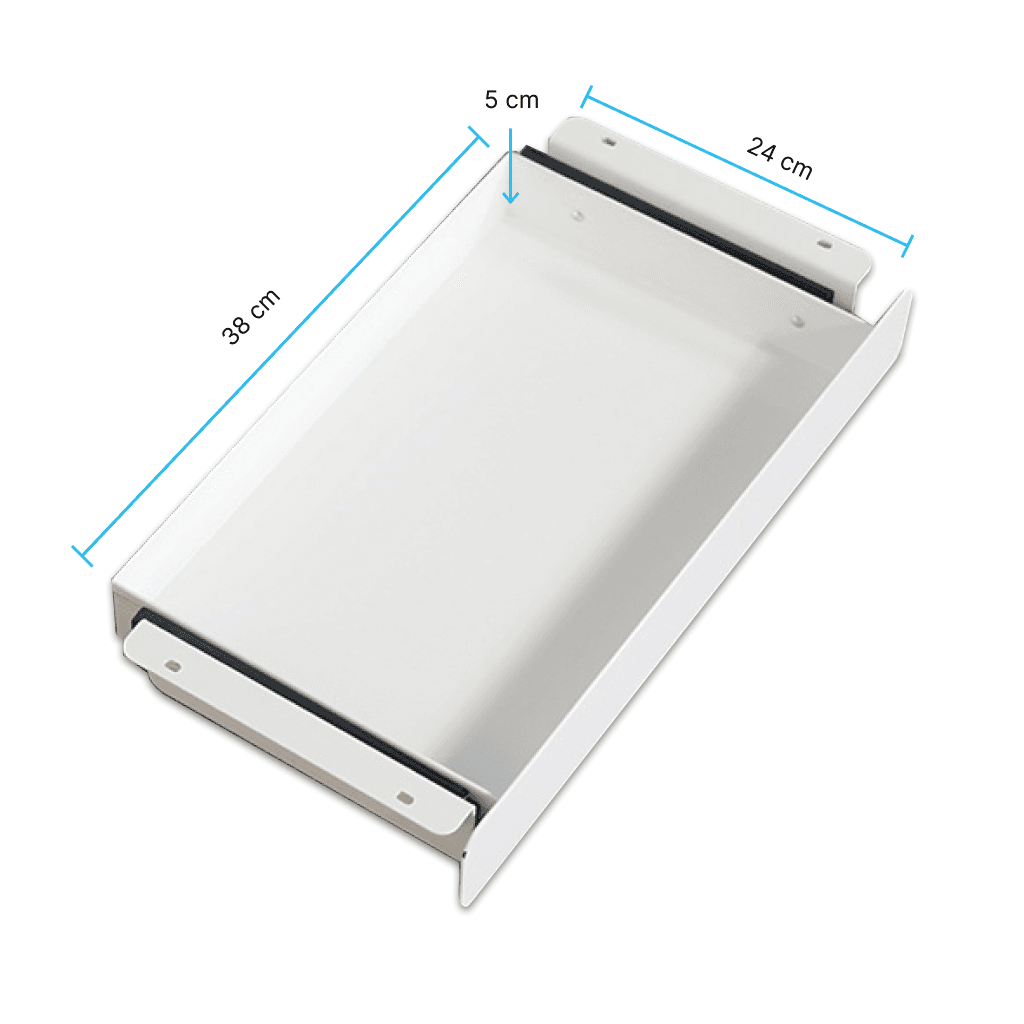 Ideal para guardar laptops, cuadernos, cables y otros elementos de trabajo. Se monta directamente debajo de la tapa del escritorio, liberando espacio en la superficie.