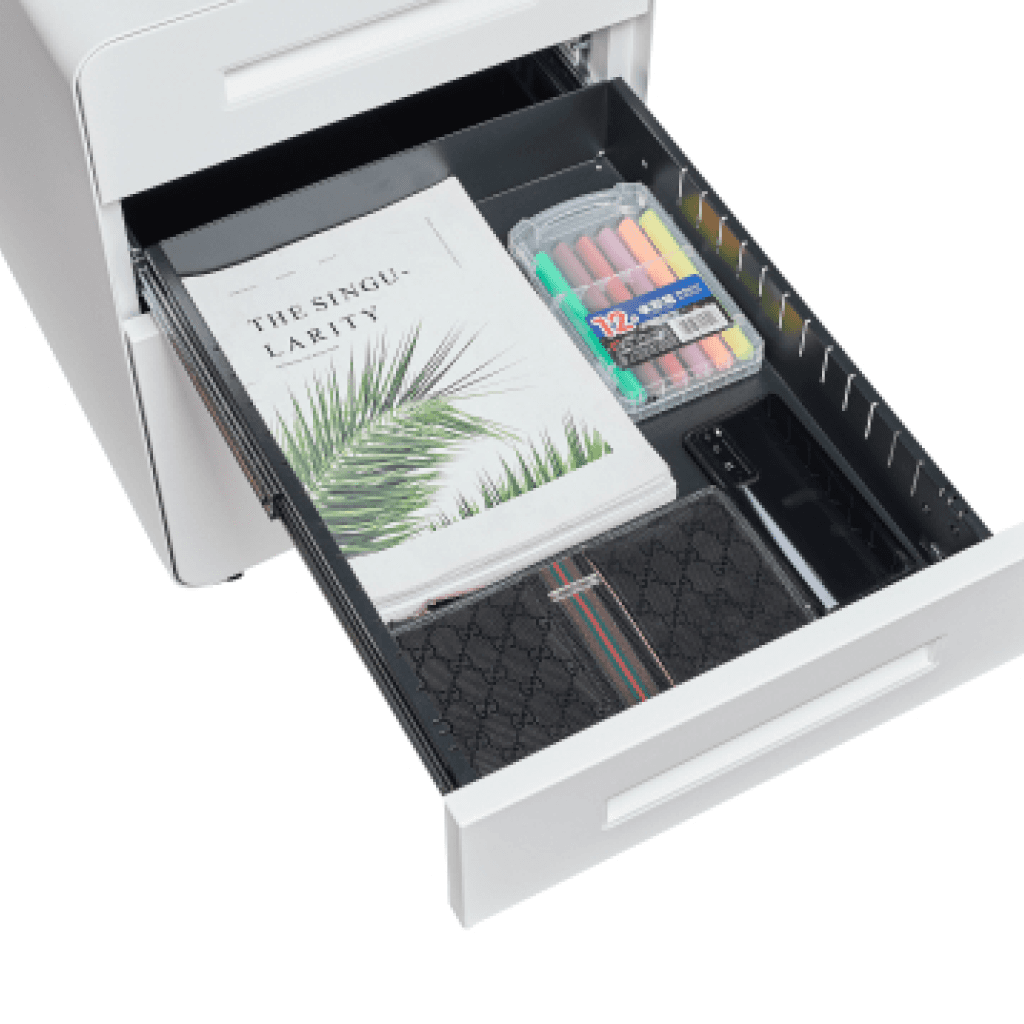 Diseñada para complementar nuestros Standing Desks, esta cajonera combina un estilo minimalista con una estructura robusta de acero. Las esquinas redondeadas y el acabado pintado en su interior y exterior elevan cualquier espacio de trabajo con un diseño moderno y atemporal.
