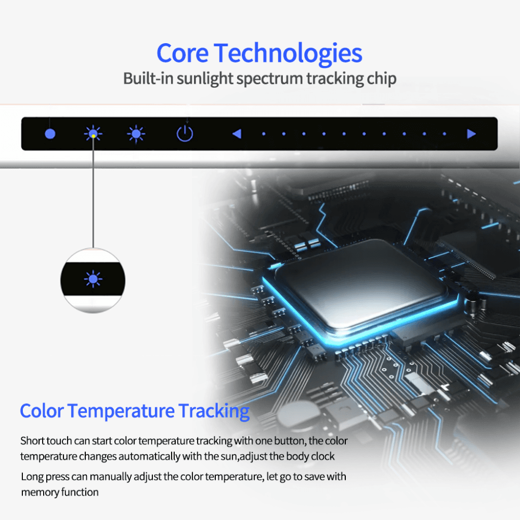 Esta lámpara LED de escritorio combina estructura robusta, iluminación ajustable y tecnología inteligente para ofrecer una experiencia visual óptima. Diseñada especialmente para quienes trabajan o estudian durante largas horas frente a la pantalla, mejora la postura, la concentración y reduce la fatiga ocular.