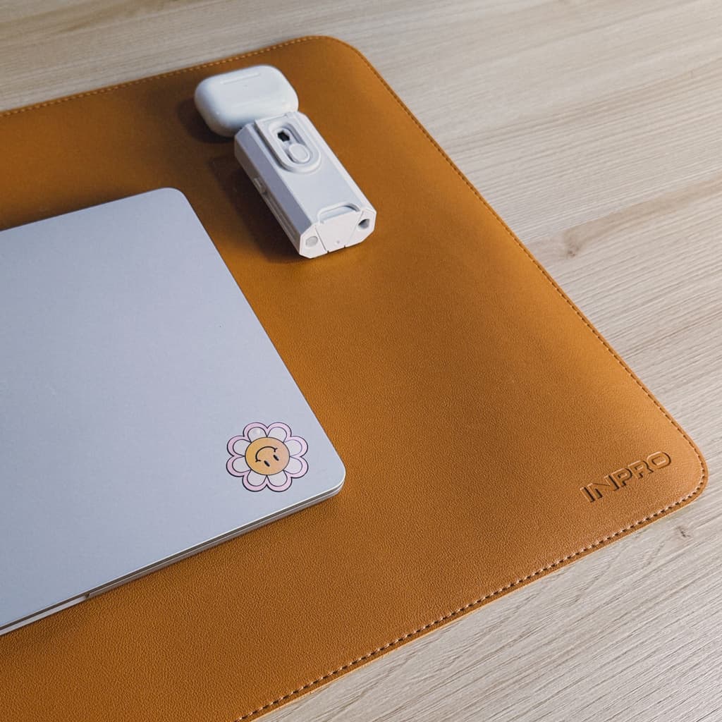 Un accesorio funcional y estético para cualquier espacio de trabajo. Su diseño reversible combina ecocuero vegano de alta calidad con corcho natural ecológico, permitiéndote alternar entre un estilo sofisticado y uno cálido según el entorno.