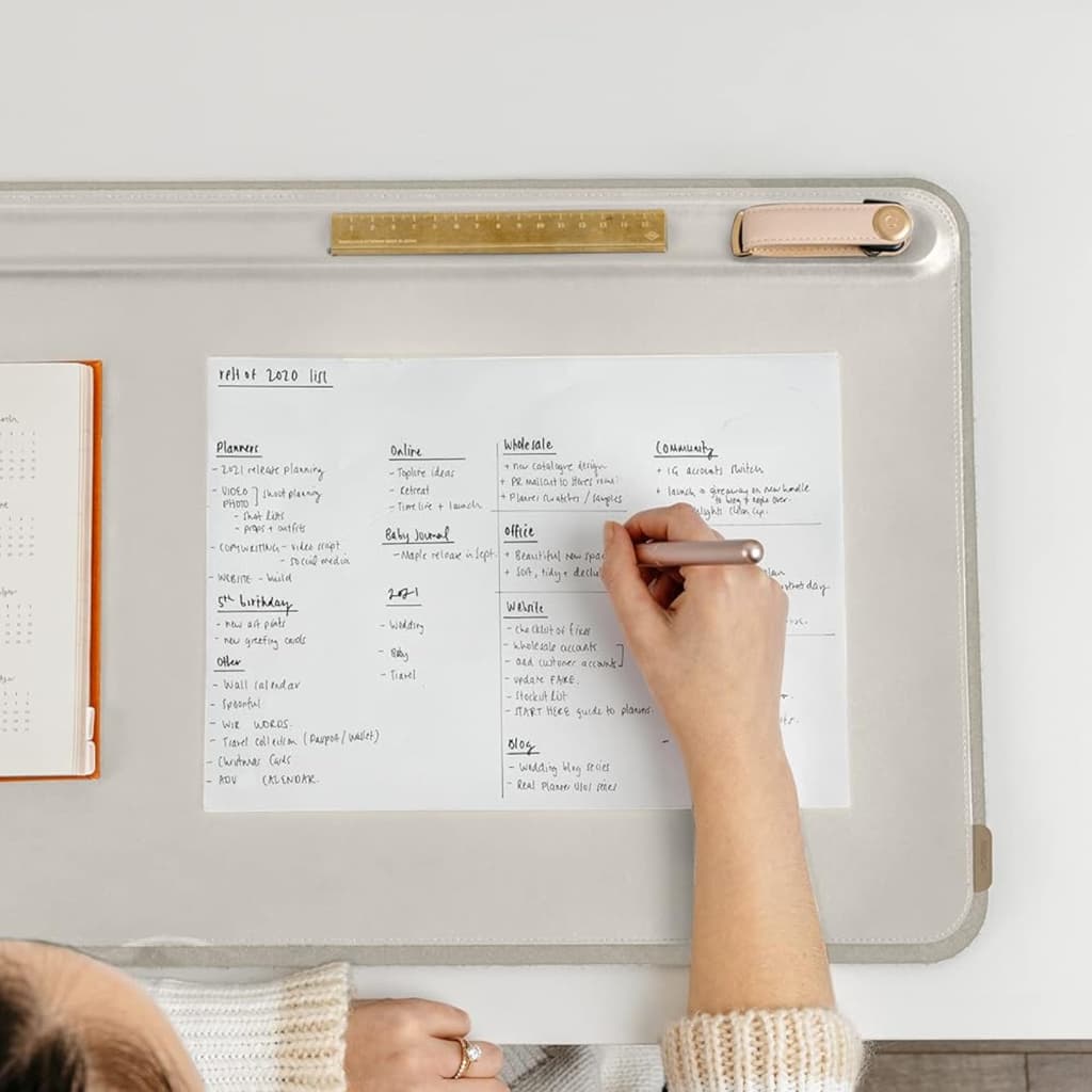 Con espacio para teclado y mouse, más un compartimento oculto para notas y papeles, este mat te permite mantener tu escritorio despejado y organizado.