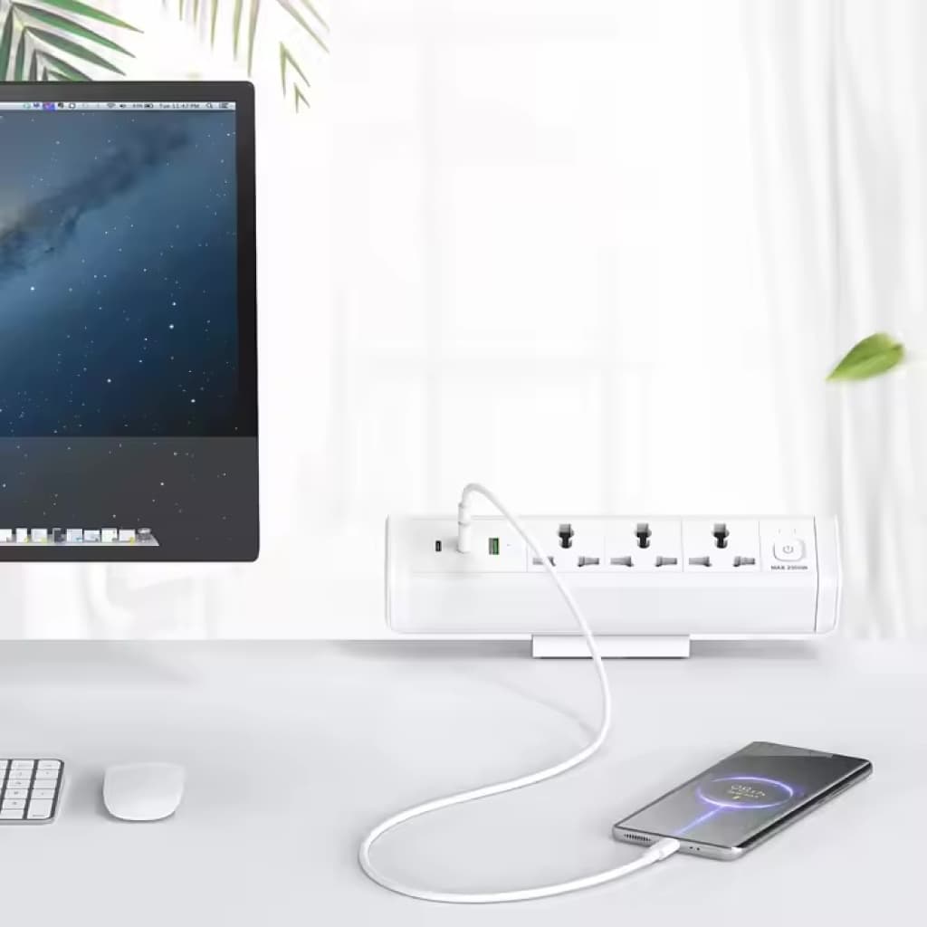 Agregá 3 tomas de corriente y 2 puertos USB directamente sobre tu escritorio. Ideal para conectar notebooks, cargadores, lámparas, celulares y más sin agacharte ni enredarte con cables.