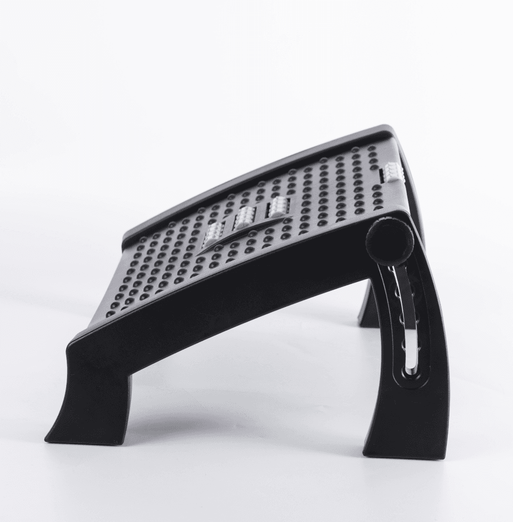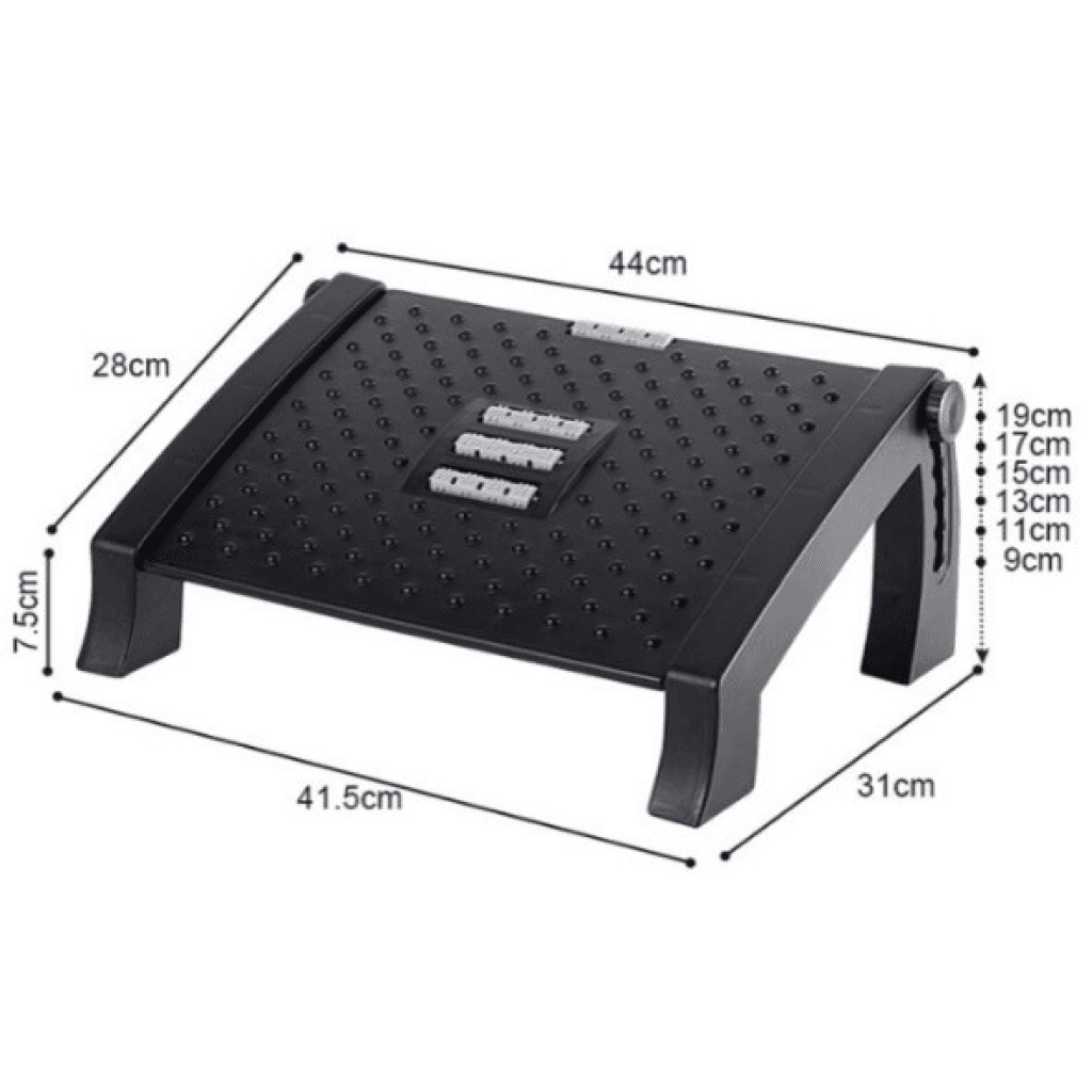 Reposapiés ergonómico de primera calidad para colocar debajo del escritorio y lograr una postura adecuada. Ayuda a reducir la presión en la espalda, el cuello y las piernas, mejorando la comodidad durante largas horas de trabajo.
