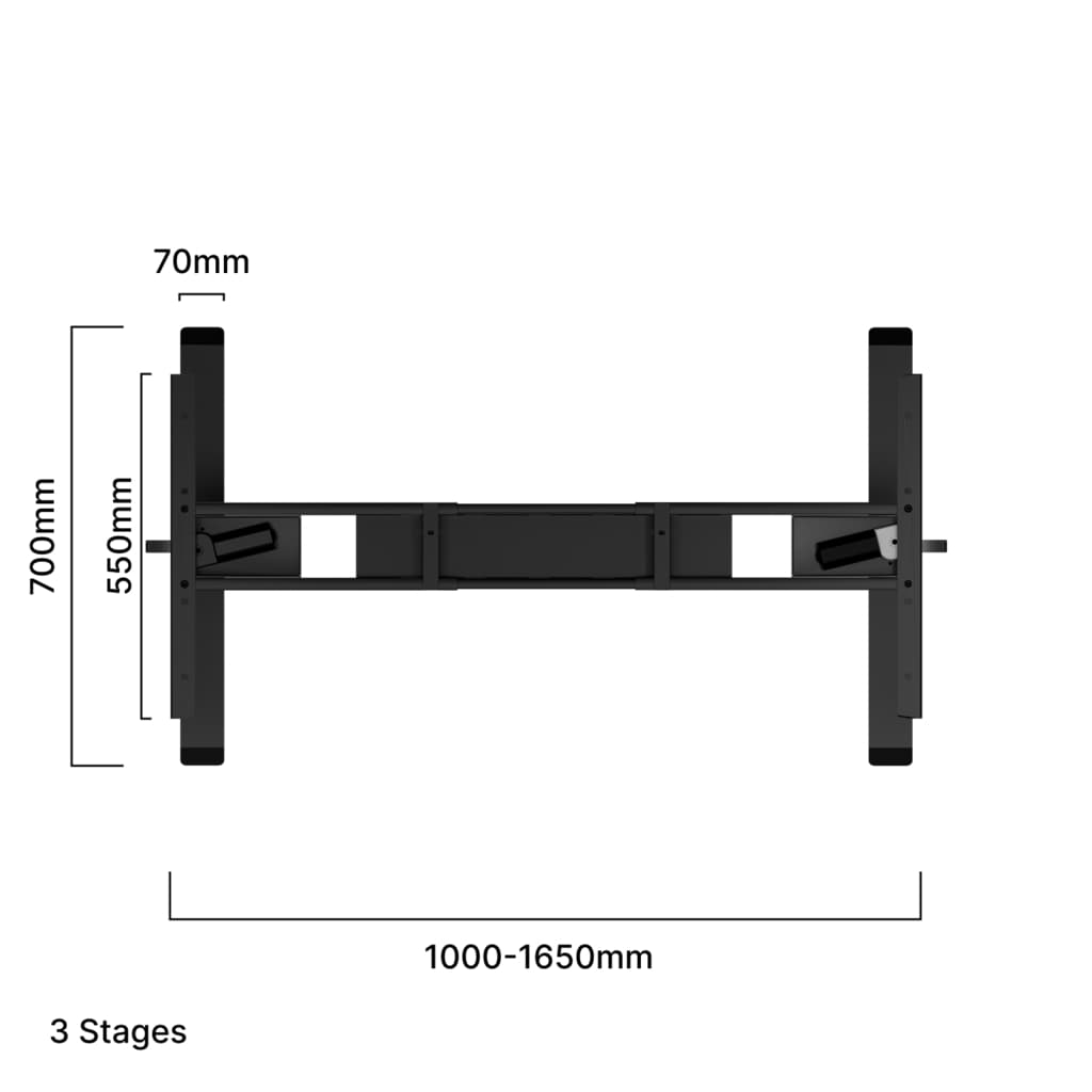 El Standing Desk Pro Duo está equipado con dos motores, uno en cada columna, duplicando la potencia en comparación con nuestros modelos estándar. Esta estructura robusta permite levantar hasta 120 kg (incluyendo tapa), ideal para superficies de mayor tamaño y equipos pesados.